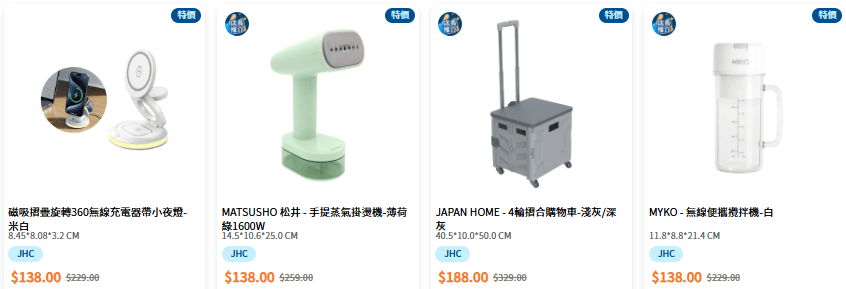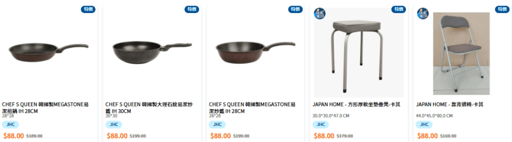 日本城設(shè)HK$18/HK$28特價(jià)專區(qū)/HK$88易潔鑊/HK$188榨汁機(jī)