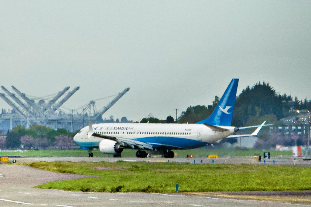 一架原計劃交付中國廈門航空的波音737 MAX飛機,之前由中國飛回美國西雅圖的波音機場。.jpg