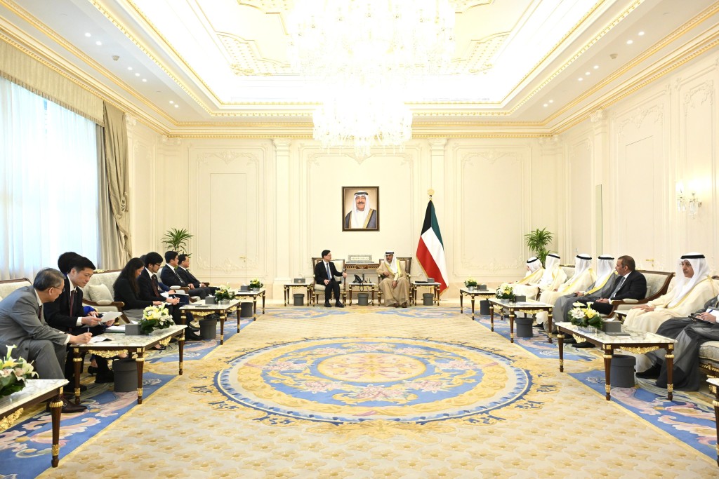李家超(左六)今日(13日)在科威特與科威特埃米爾(國(guó)家元首)Meshal Al-Ahmad Al-Jaber Al-Sabah(右六)會(huì)面。政府新聞處圖片