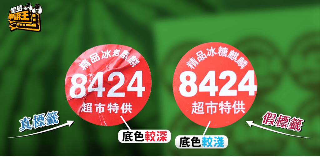 假標(biāo)簽幾可亂真,一般消費者又是否能分真假?《星島申訴王》進行街訪,先購入了一個正宗的“8424”西瓜及另一個其他品牌的西瓜,然后將假標(biāo)簽貼上,看看市民是否能夠辨別出來。