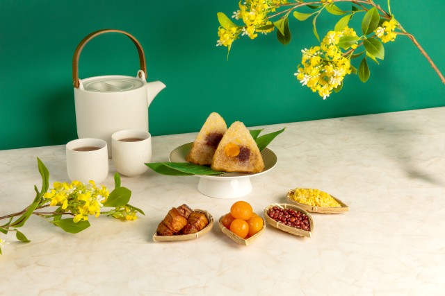此外,今年酒店亦推出素食之選,“富豪至尊新豬肉素粽”采用新豬肉,融合糯米、黑糯米、花生、藜麥及多種豆類,配上精心炒制的栗子,重塑傳統(tǒng)咸肉粽滋味。另外兩款素粽“富豪至尊陳皮桂花豆沙堿水粽及富豪至尊蓮蓉堿水粽”,前者將煙韌的糯米搭配特選的紅豆蓉,再加入老陳皮和淡雅桂花,啖啖清甜;后者則采用上乘香滑蓮蓉,甜而不膩,配上綿密的糯米,口感豐富。