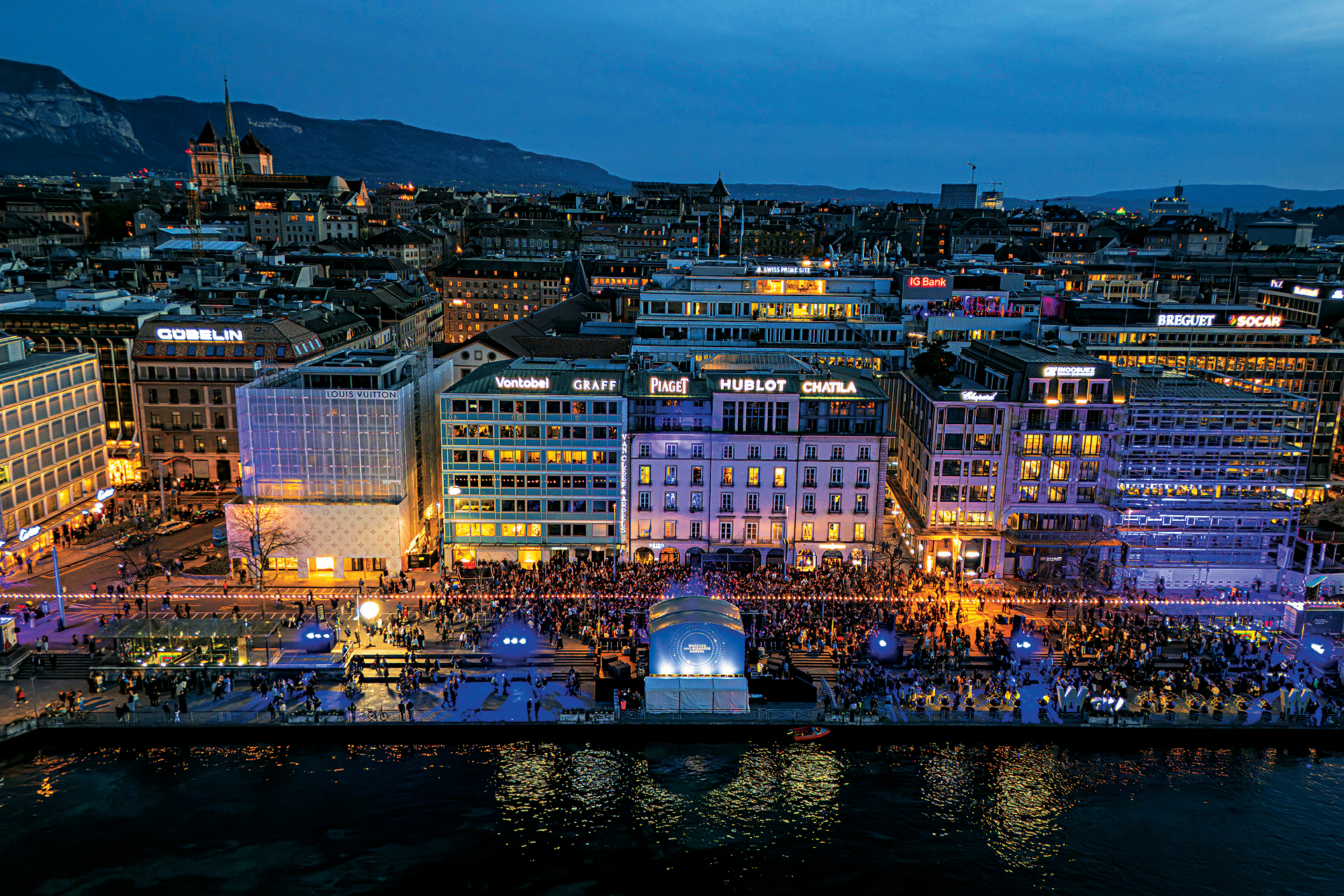 近年Watches and Wonders舉辦得越來(lái)越成功,其中一個(gè)原因是主辦單位懂得將表展從地點(diǎn)偏遠(yuǎn)的場(chǎng)館,延伸至日內(nèi)瓦市中心,藉著于市內(nèi)舉辦的“In The City”多項(xiàng)活動(dòng),包括聯(lián)合品牌設(shè)于專門(mén)店的新表預(yù)覽、在名為Watchmaking Village主場(chǎng)地舉辦的工作坊、導(dǎo)賞團(tuán)、制表師即場(chǎng)示范等等,吸引普羅大眾參與及關(guān)注,令以往表展被認(rèn)為是“嚴(yán)肅”,且只屬于業(yè)內(nèi)人士的商業(yè)活動(dòng),變成一年一度日內(nèi)瓦市全民皆可參與的鐘表主題嘉年華。看看上圖的熱鬧盛況,誰(shuí)想到大會(huì)居然會(huì)在黃昏時(shí)分在湖邊舉行音樂(lè)會(huì),與大家一起載歌載舞?!萊茵河也流經(jīng)巴塞爾市,但當(dāng)年的Baselworld卻未曾在河邊舉辦類似的活動(dòng)吧!