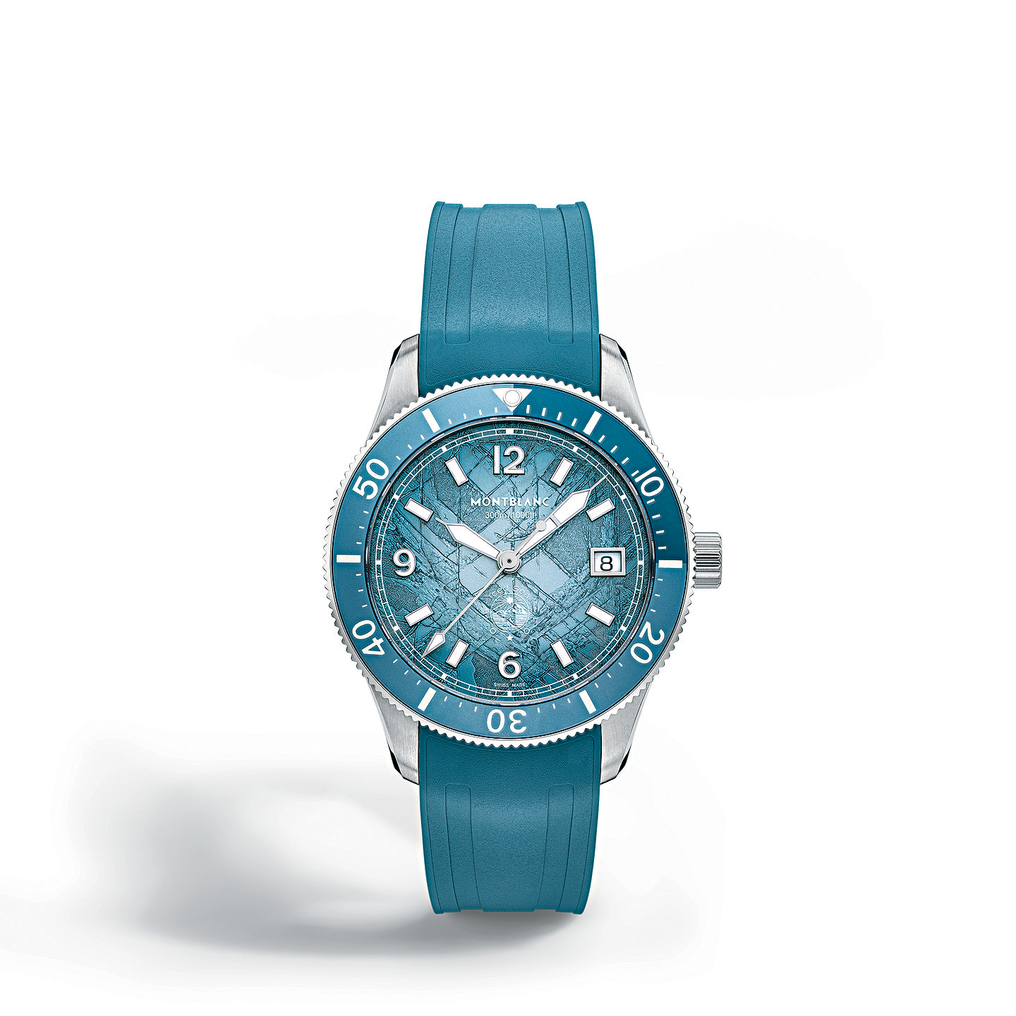 今年品牌為Iced Sea系列新增38mm精鋼表款,并提供冰藍(lán)色或冰白色兩色選擇。表盤(pán)上的Sfumato風(fēng)格冰川紋理圖案,創(chuàng)作靈感源于蒙特維冰河的高山冰川,這種獨(dú)特圖案是采用一種名為“gratte-boise”的古老技術(shù)制作。藍(lán)色表盤(pán)搭配藍(lán)色鋁制旋轉(zhuǎn)表圈,白色表盤(pán)則配白色表圈。此表搭載MB 24.17自動(dòng)上鏈機(jī)芯,動(dòng)力儲(chǔ)存38小時(shí),防水深度300米。表背以3D雷射鐫刻冰川及潛水員浮雕圖案,搭配可替換的橡膠表帶或不銹鋼鏈帶。