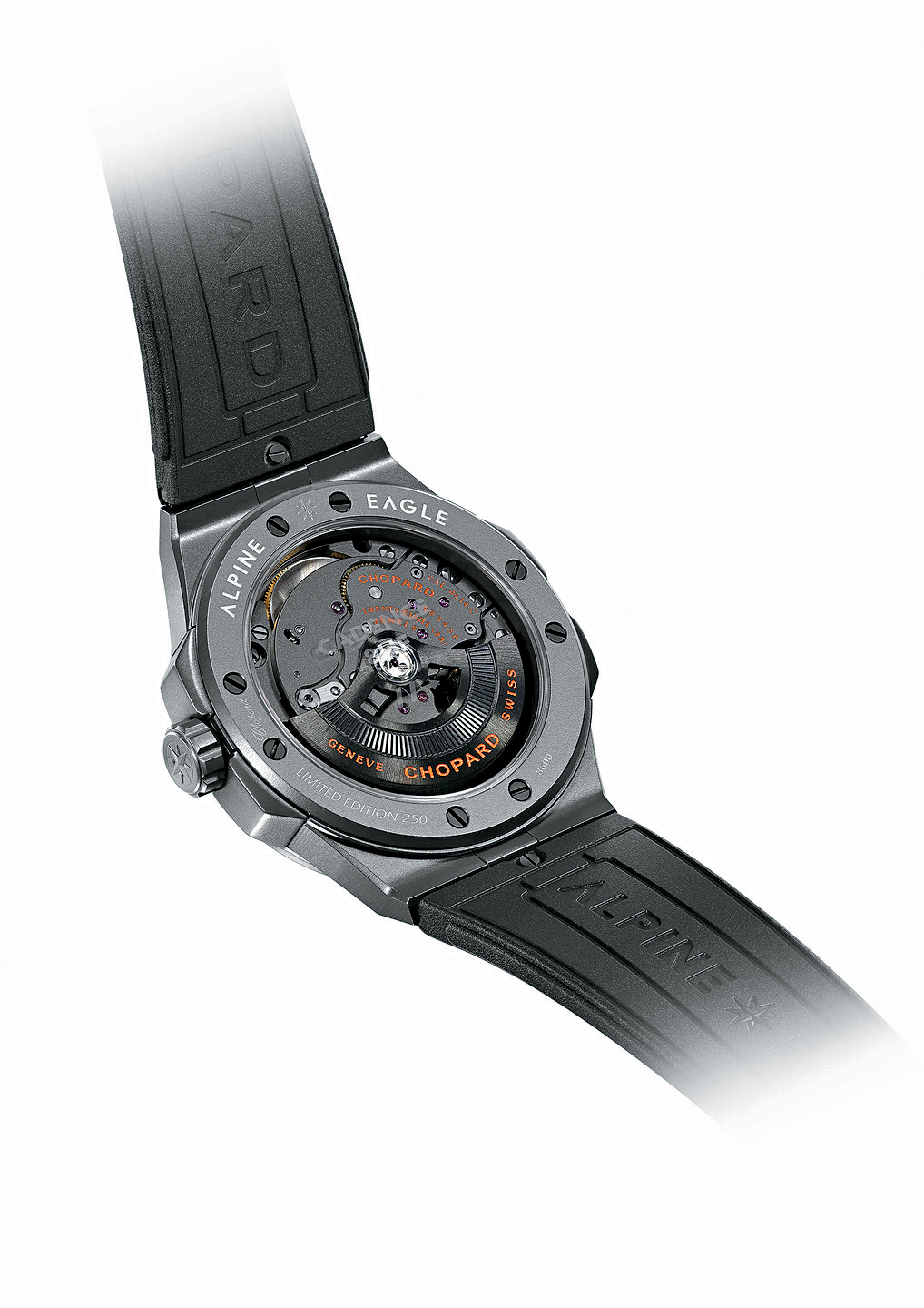 屬于同系列第三代8Hz高頻腕表的Alpine Eagle 41 SL Cadence 8HF,名字中的“SL”,代表“Super Light”超輕的意思,也象征Chopard致力追求的極致輕巧。表殼、表圈、表冠和表扣均以輕巧且硬度高達(dá)1000維氏的炭灰色陶瓷鈦金屬制作。此系列的標(biāo)志性鷹眼虹膜圖案表盤(pán),則改以鈦金屬制造,更首次配上橡膠表帶。為進(jìn)一步“減磅”,就連機(jī)芯的主機(jī)板和表橋都改用陶瓷鈦金屬制,并以灰黑色調(diào)呈現(xiàn),與表殼更相襯。