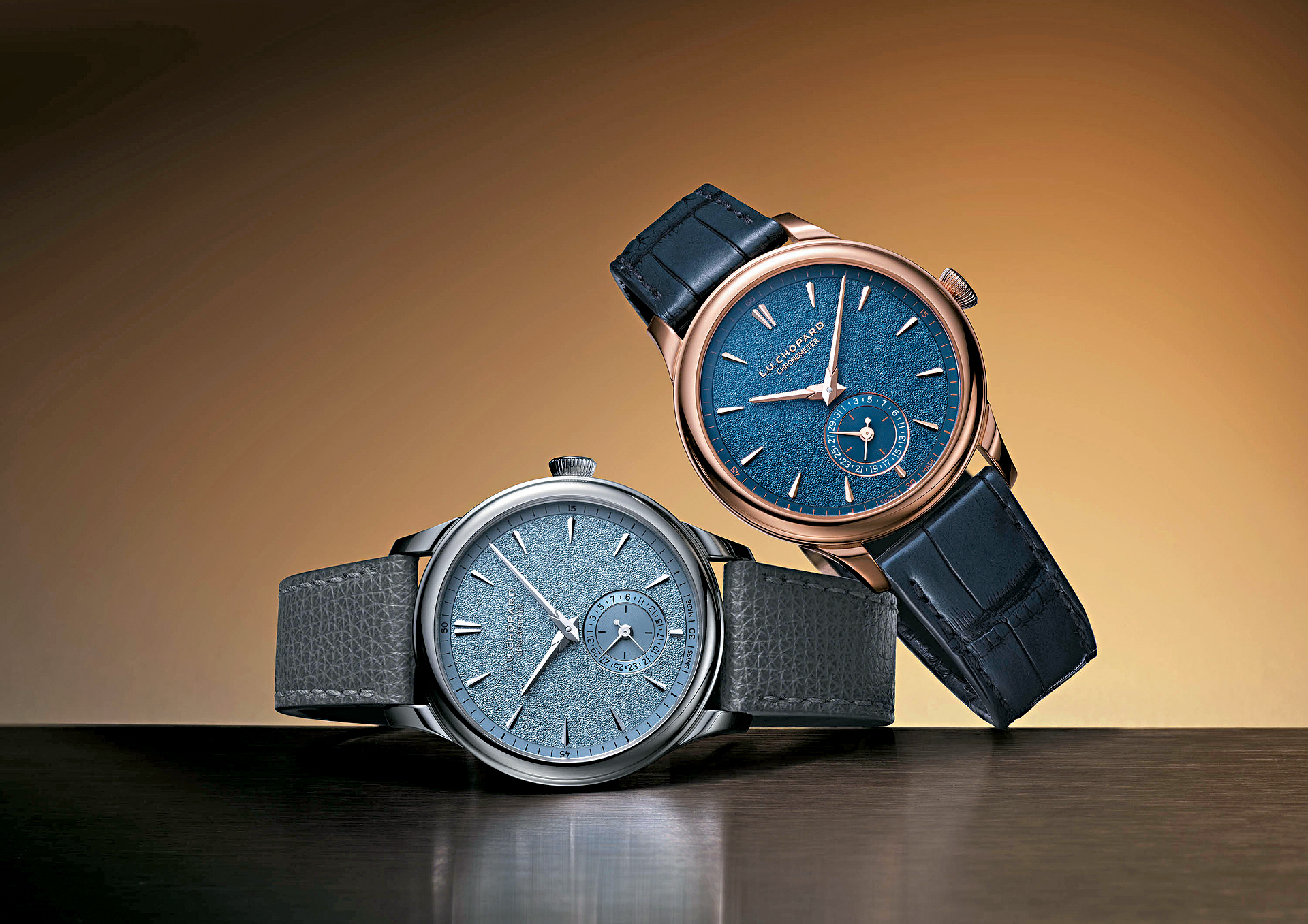 為慶祝L.U.C Quattro今年面世25周年,Chopard推出全新的第四代表款,備有鉑金和玫瑰金兩款,均采用線條更纖巧及流麗的39mm表殼,搭載全新L.U.C 98.09-L手上鏈機(jī)芯,內(nèi)置4個(gè)發(fā)條鼓,然而提供長(zhǎng)達(dá)9天動(dòng)力儲(chǔ)備的規(guī)格不變,并同樣配備恒定動(dòng)力裝置,不過(guò)動(dòng)力儲(chǔ)備顯示就由原本的表盤(pán),轉(zhuǎn)移到機(jī)芯夾板位置,簡(jiǎn)潔的表盤(pán)格局,令帶黃銅粒紋質(zhì)感的冰藍(lán)或深藍(lán)色表面,視覺(jué)上更加整潔清晰。