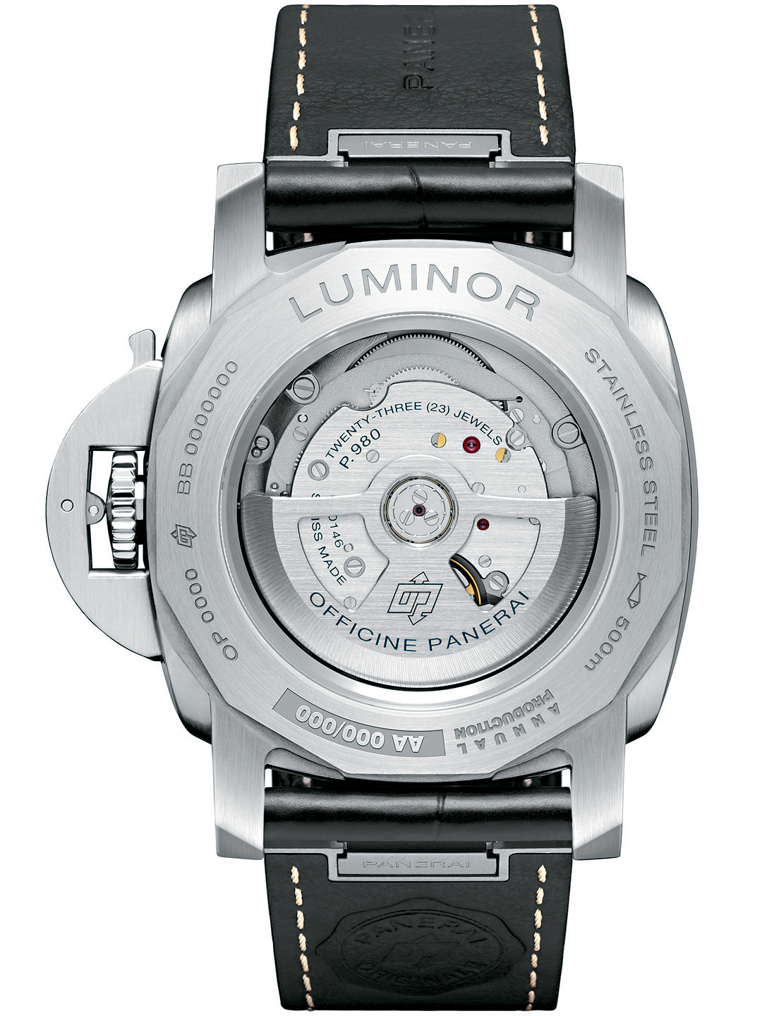 新一代Luminor Marina系列迎來(lái)一次大升級(jí),表殼以純度更高更抗腐蝕的AISI 316LVM-1.4441不銹鋼制成,表殼厚度較之前減少12%。表盤(pán)刪除“Automatic”字樣,日期邊框放大,整體空間感更強(qiáng),也更簡(jiǎn)潔,夜光顯示亦轉(zhuǎn)用了更光亮的Super-LumiNova X2物料。防水深度雖然由300米升至500米,卻仍然配置透視底蓋,方便欣賞全新且更薄的P.980自動(dòng)機(jī)芯,表帶是首次在44mm尺碼型號(hào)加入快拆設(shè)計(jì)。