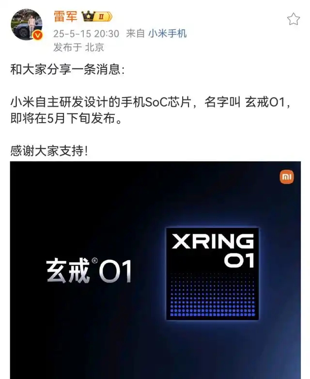 5月15日晚間,雷軍發(fā)布微博稱,小米自主研發(fā)設(shè)計(jì)的手機(jī)SoC芯片,命名為“玄戒O1”,即將在5月下旬發(fā)布。此外,15日有多位網(wǎng)友在社交平臺(tái)分享雷軍演講,在演講中雷軍首次談到近期小米SU7事故引發(fā)的輿論危機(jī)。