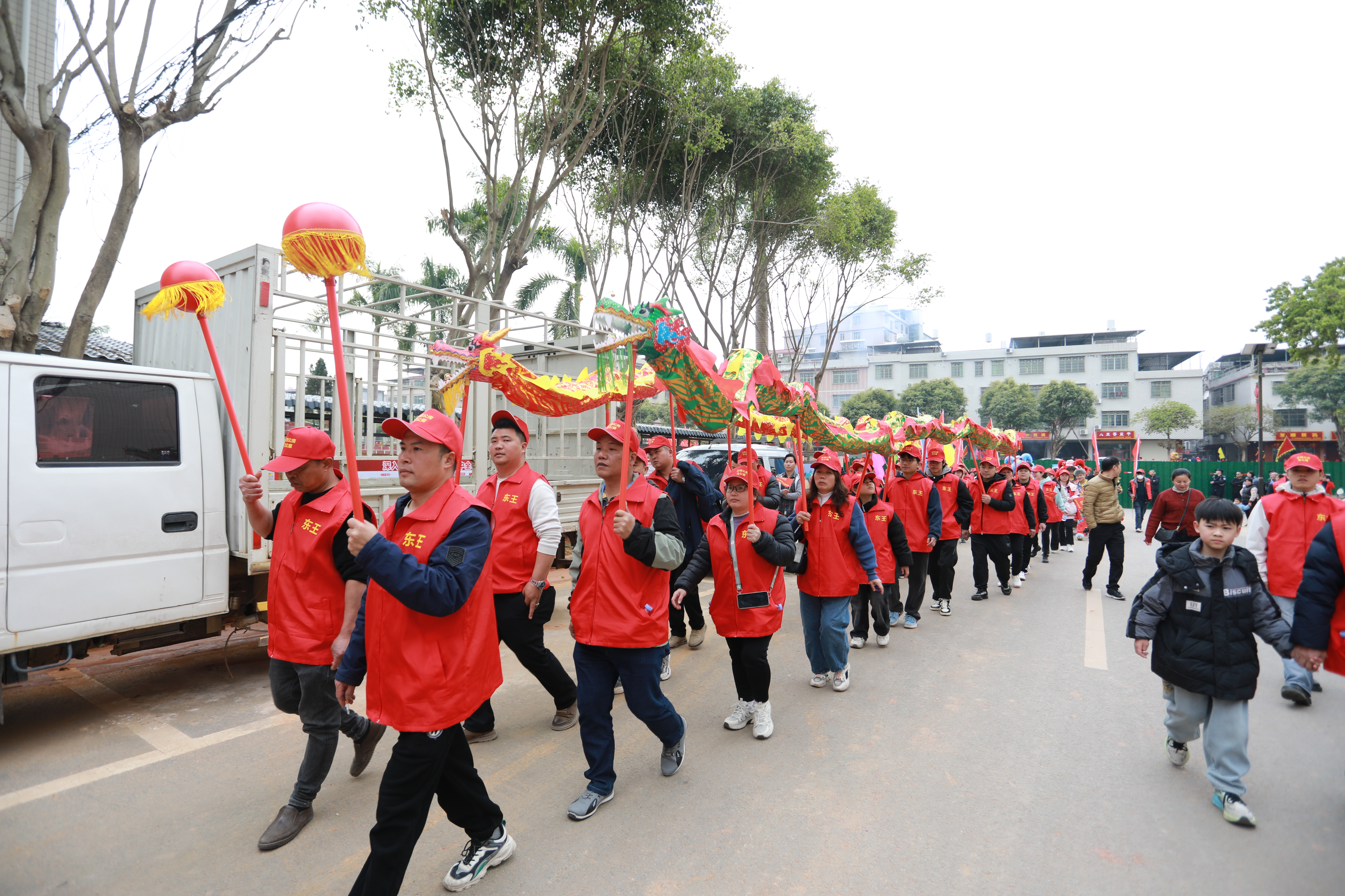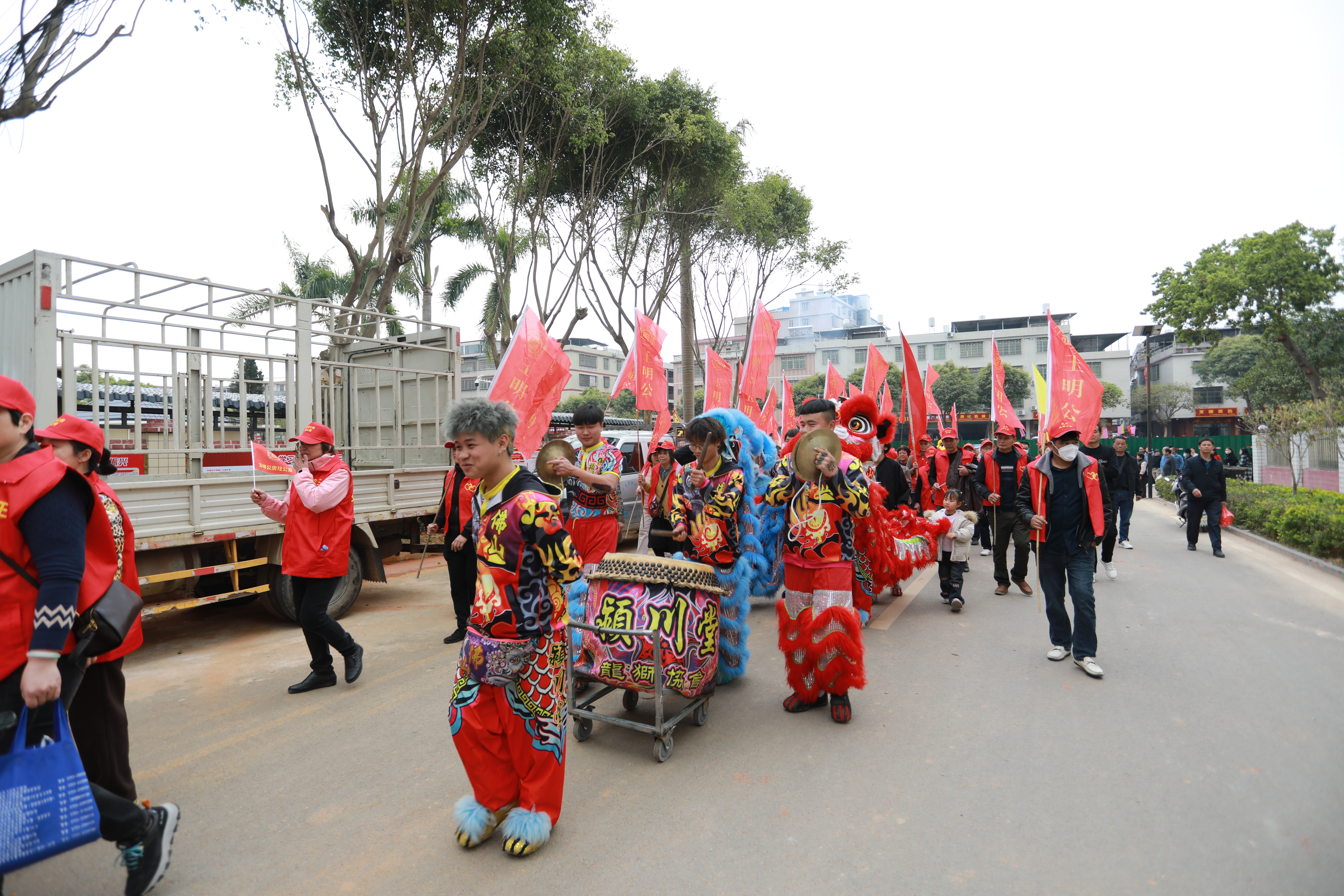 祭牌結(jié)束后,巡游隊(duì)伍抬著宗泰公靈牌坐轎沿松源鎮(zhèn)主要街道和村道進(jìn)行巡游,在“厚德傳家”牌匾的導(dǎo)引下,“樂(lè)善好施”等大橫幅及各大房支的旌旗隨后跟進(jìn),霎時(shí)整個(gè)圩鎮(zhèn)鑼鼓喧天,鞭炮齊鳴,巡游隊(duì)伍彩旗飄飄、浩浩蕩蕩。清晨的寒意也抵擋不住參加民俗活動(dòng)的市民熱情高漲,“我們一大早從福建趕來(lái),參加這一年一度的非遺民俗活動(dòng),非常熱鬧?!睆凝垘r武平象洞鎮(zhèn)攜家人前來(lái)參觀(guān)的廖先生說(shuō)。