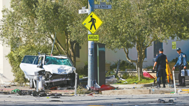 ▲當日West Portal巴士站一家四口滅門車禍現(xiàn)場。 美聯(lián)社/三藩市紀事報Benjamin Fanjoy