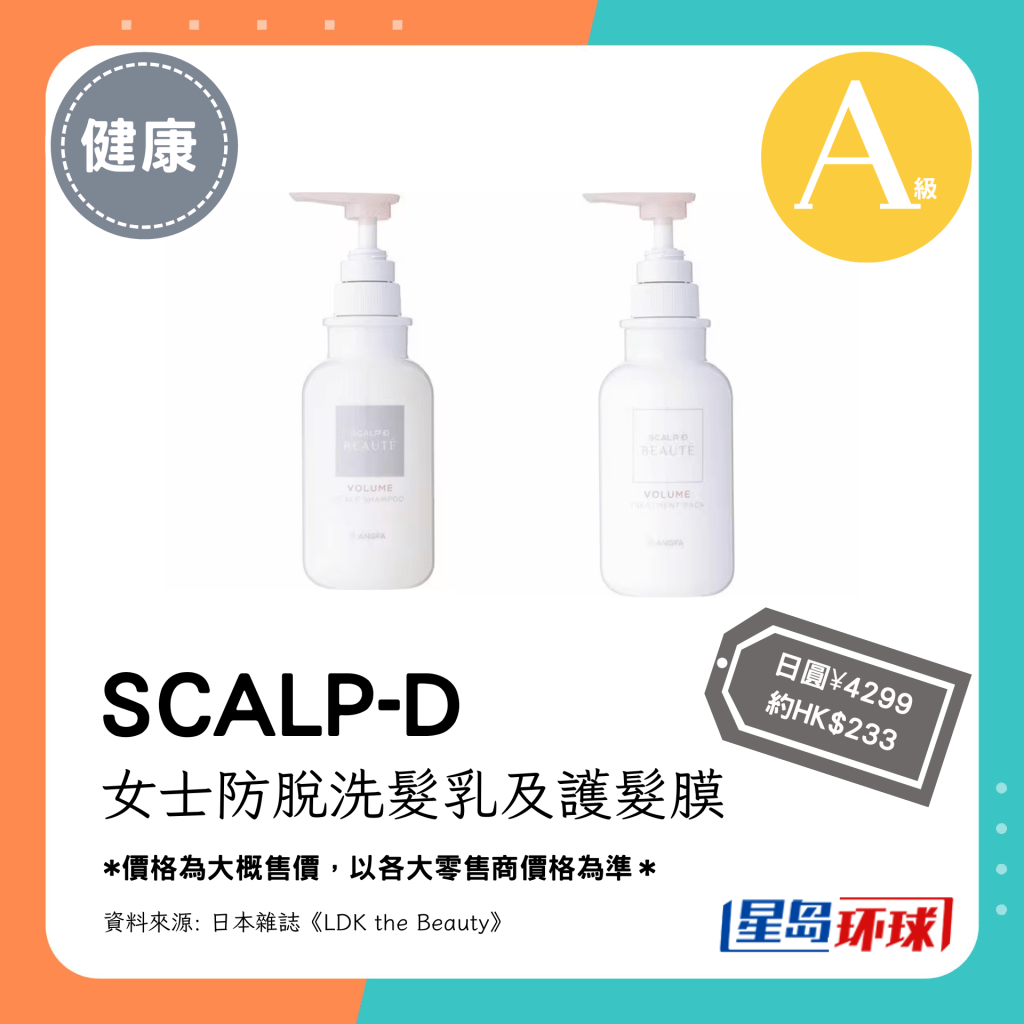 第5位(4.00分):SCALP-D 女士防脫洗發(fā)乳及護發(fā)膜(日圓¥4299,約HK$233)