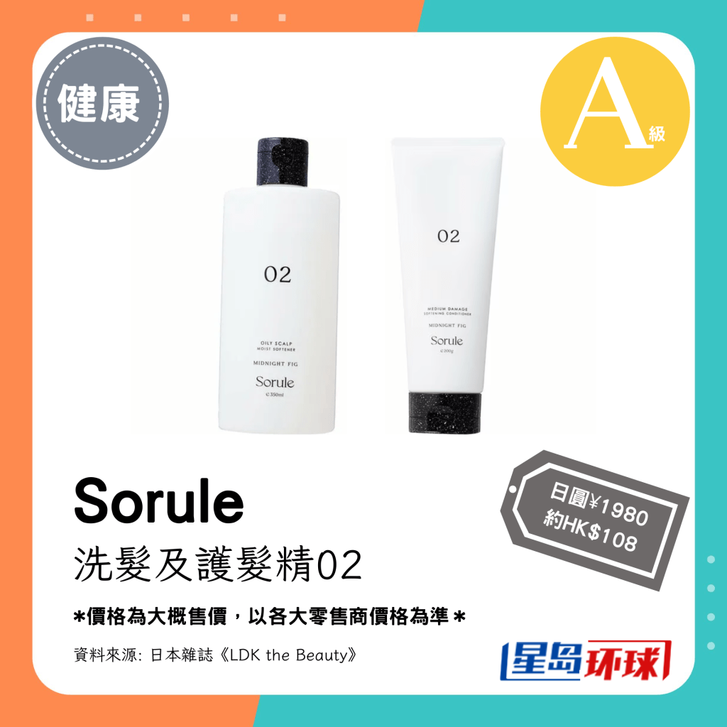 第1位(4.31分):Sorule洗發(fā)及護發(fā)精02(日圓¥1980,約HK$108)