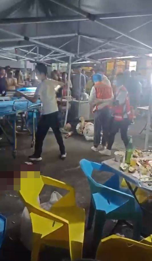 影片可見,槍擊后現(xiàn)場血漬及雜物布滿地上,有一名穿藍色T恤男子口鼻流出大量鮮血,頭部后仰失去知覺。有目擊者指,椅上中槍男子頭部中槍,當(dāng)場斃命。另一中槍男子則倒在地上,同樣傷重死亡。