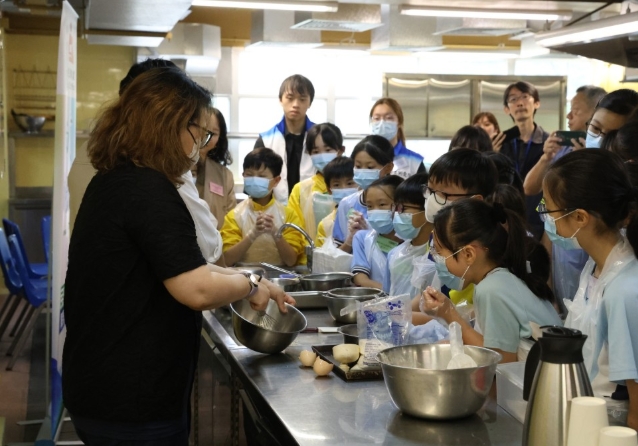 西貢民政事務處今次舉辦“‘貢’同關愛甜品制作”,連同“我要贊佢”學生大使、區(qū)內(nèi)小學生及西貢關愛隊到位于將軍澳邱子文青年學院親手制作芝麻餅,小學生負責打蛋液,各人各司其職,分工合作。有小學生表示,自己從來未曾下廚,今次可烘培中式甜點給長者,感到十分有意義。