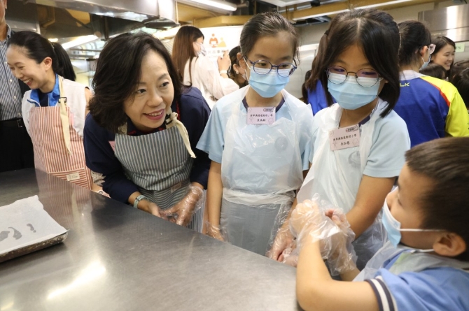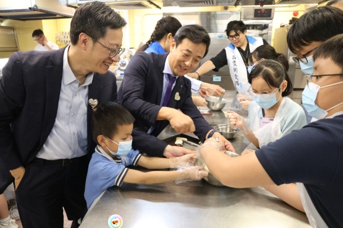 將軍澳區(qū)小學校長連同學生一同制作芝麻餅。