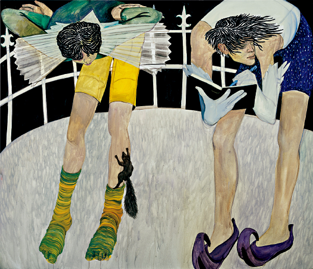 ▲90后新銳藝術(shù)家的代表人物丁士倫的油彩畫作《爭執(zhí)(仿《仙女》)》,2021年作,估價(jià)由180,000至280,000港元。