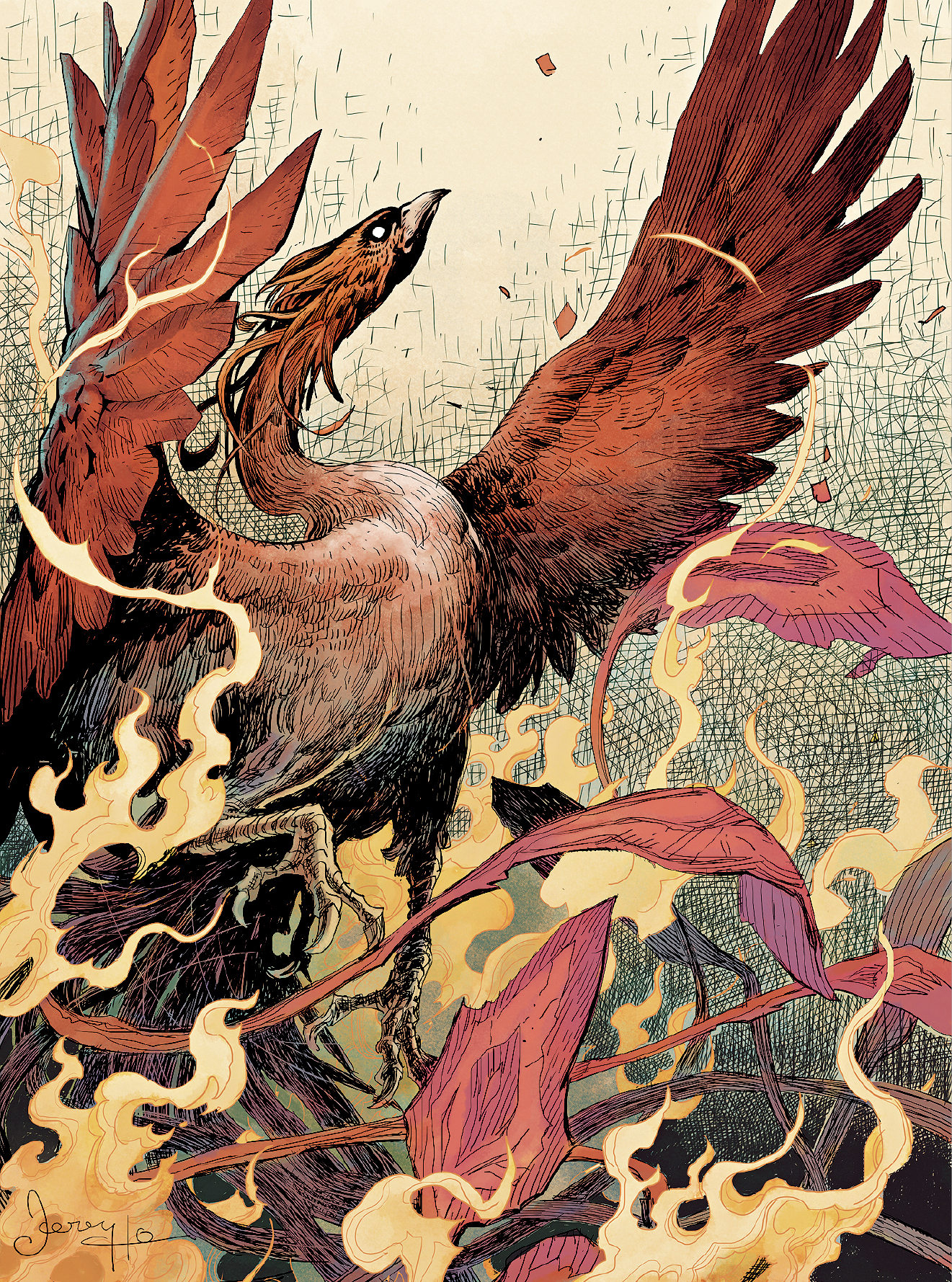 ▲曹志豪×梁冠文《朱雀》,四神獸之一,類象鳳凰,統(tǒng)御南方,色尚赤,煚光亮,象征文明。主人坐北向南,南面明堂寬敞,朱雀翔舞,猶如面前拱揖相迎,助長氣勢,意象喧騰。