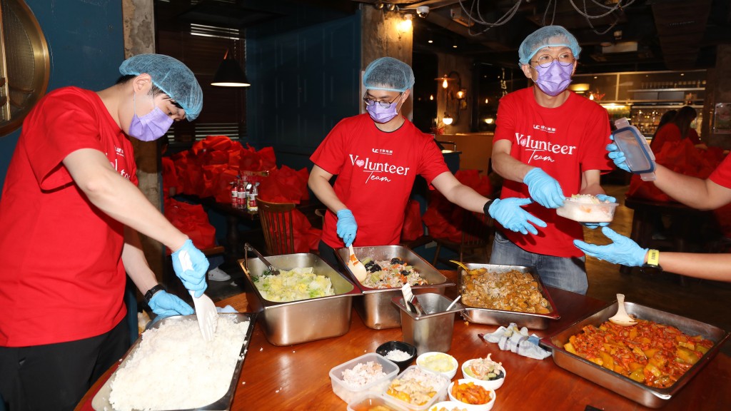 建華集團組義工團于母親節(jié)11號當天到訪銀杏館油麻地分店派飯派福袋,為長者及基層送暖。