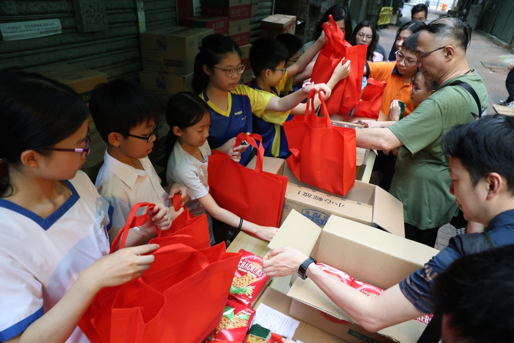 建華集團5號佛誕當日向銀杏館長沙灣分店捐贈食材,由星島集團我要贊佢大使、校長及家長二十多人到場組裝成福袋送贈長者。