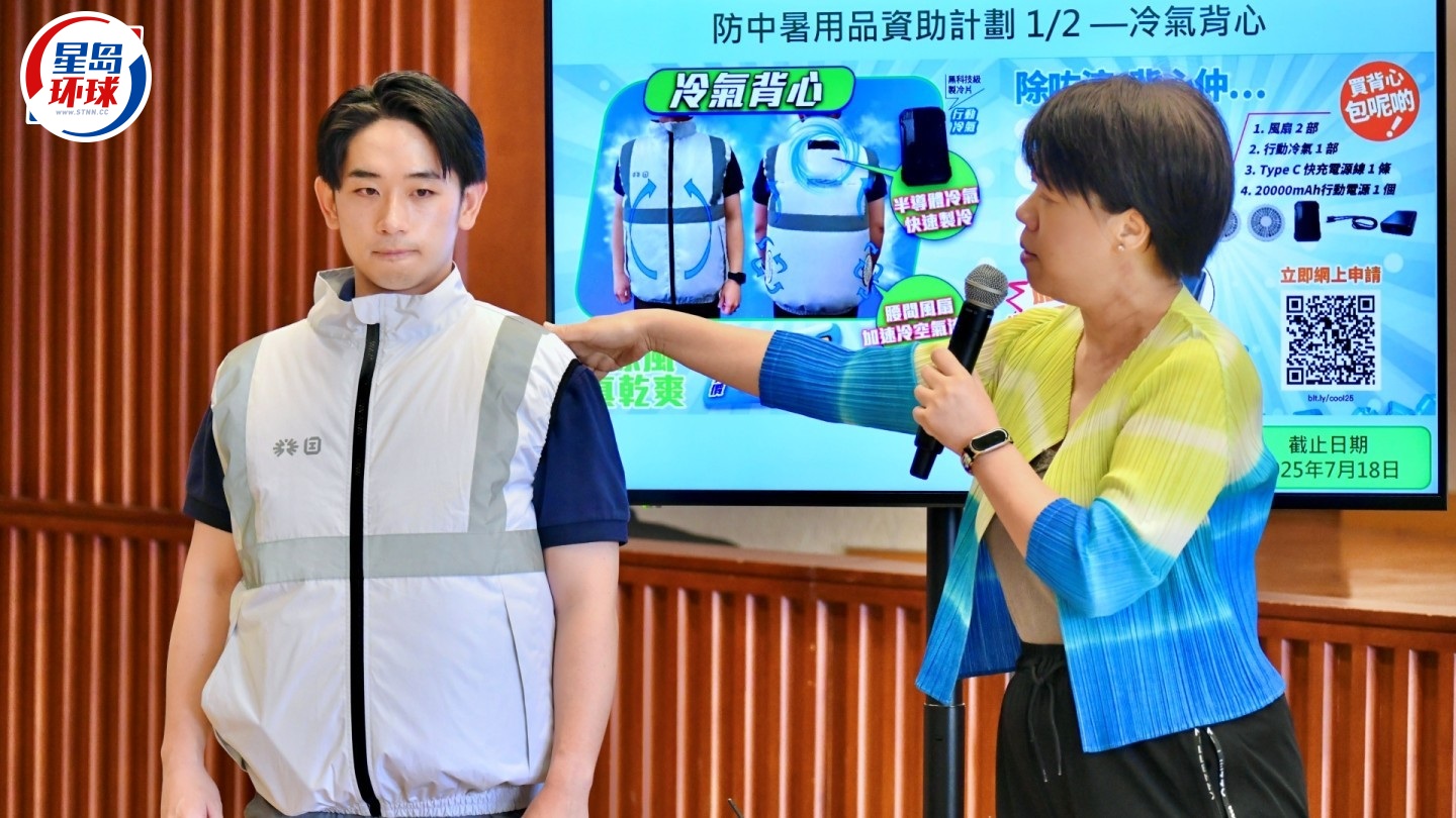 氣候變化令香港近年的天氣越趨炎熱,職安局總干事游雯表示,為協(xié)助雇主采購(gòu)有效的防暑用品,職安局與勞工處再度推出“防中暑用品資助計(jì)劃”,資助較高中暑風(fēng)險(xiǎn)的行業(yè)的中小企、機(jī)構(gòu)及工會(huì)購(gòu)買防暑裝備,經(jīng)資助后,可以優(yōu)惠價(jià)199元購(gòu)買“冷氣背心”及以100元購(gòu)買“升級(jí)版太陽(yáng)能風(fēng)扇”等。