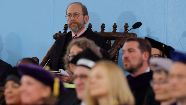 ▲哈佛現(xiàn)任校長加伯(Alan M. Garber)雖然態(tài)度溫和,但面對特朗普政府施壓立場強(qiáng)硬,圖為他出席畢業(yè)典禮的資料照。(路透)