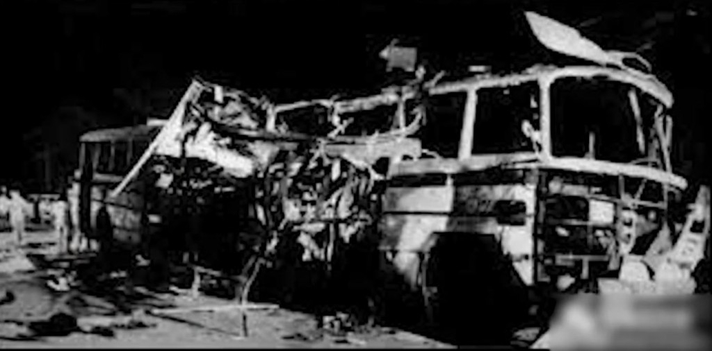車上乘客及路人的殘肢布滿四周。70米外的建筑物門窗、瓦片也受震波損毀。事件導(dǎo)致40人死亡,84人輕重傷。