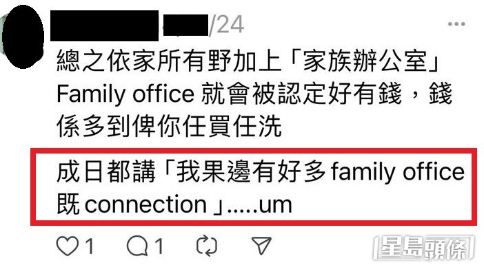 他續(xù)指,近年市面確實出現(xiàn)自稱是“家辦高管”的人,為多個家族管理家辦業(yè)務,旗下資金豐厚;有人稱認識不少富豪,擁有超強人脈,聲稱可介紹與富商合作做生意。