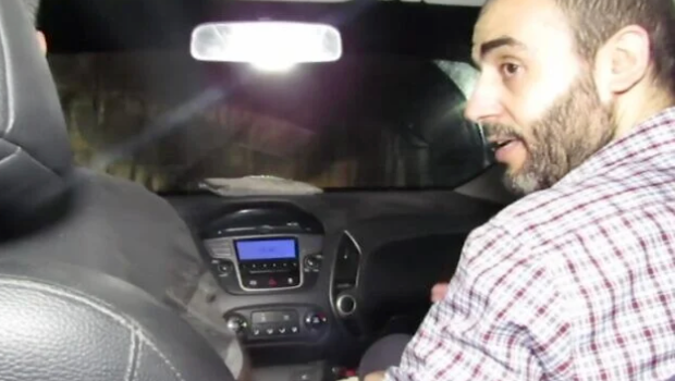 以色列國(guó)防軍于2023年12月17日公布的一段未注明日期的視頻截圖顯示,穆罕默德·辛瓦爾(右)乘坐一輛汽車(chē)穿過(guò)加沙地帶的地下隧道。圖源:《以色列時(shí)報(bào)》