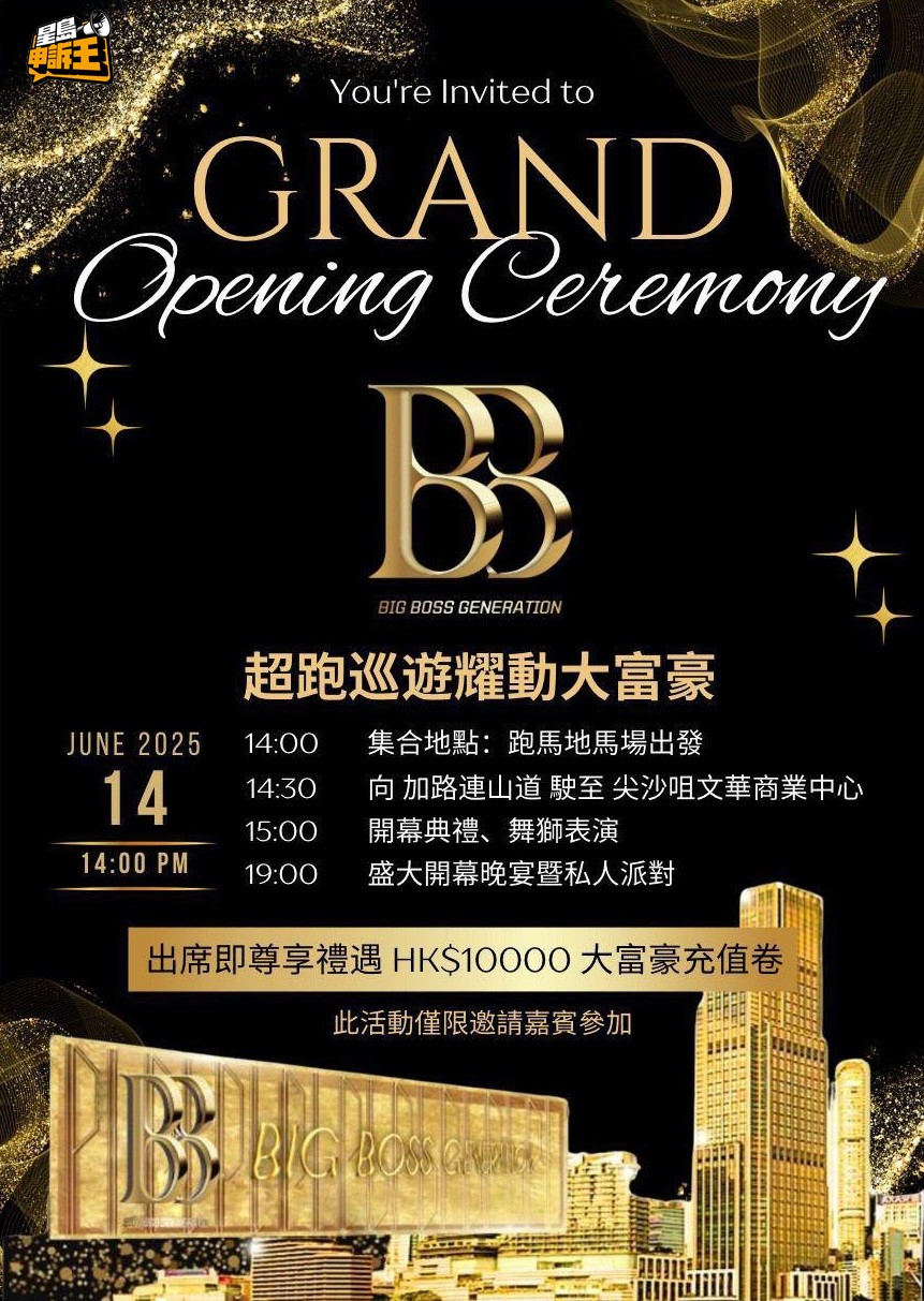 《星島申訴王》取得新“大富豪”向貴賓發(fā)出的邀請(qǐng)函,并得知當(dāng)中的開幕細(xì)節(jié)。邀請(qǐng)函抬頭以新“大富豪”英文名“Big Boss Generation”的簡寫發(fā)出,簡稱“BB”,開幕日期訂為6月14日星期六。
