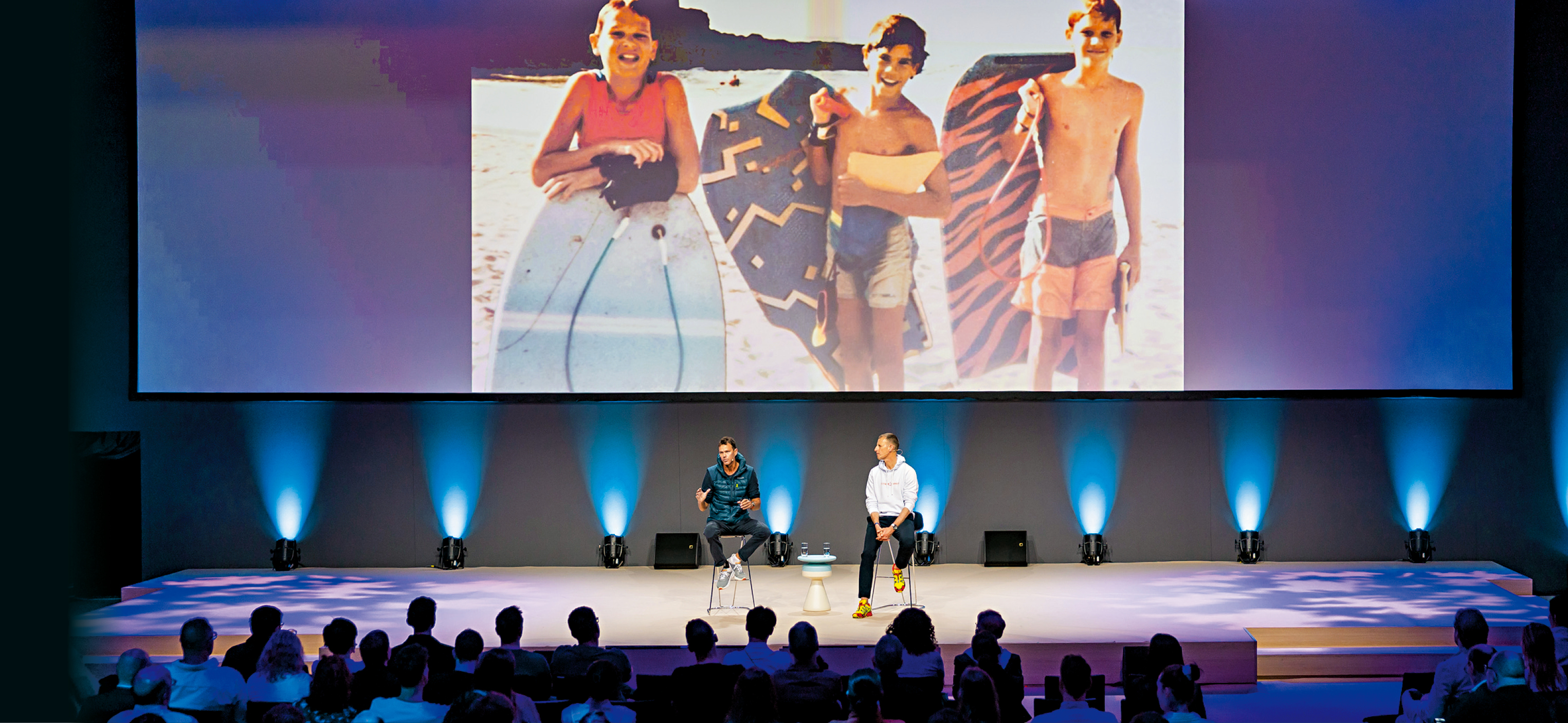 ▲滑浪好手Mike Coots講述與Ulysse Nardin一起推動海洋保育的故事。