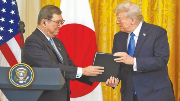 ▲日本首相石破茂29日與美國總統(tǒng)特朗普電話會談。 美聯(lián)社資料圖