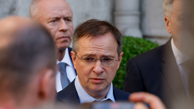 2025年5月15日,俄羅斯談判代表梅金斯基(Vladimir Medinsky)于土耳其伊斯坦堡談判后接受媒體采訪。