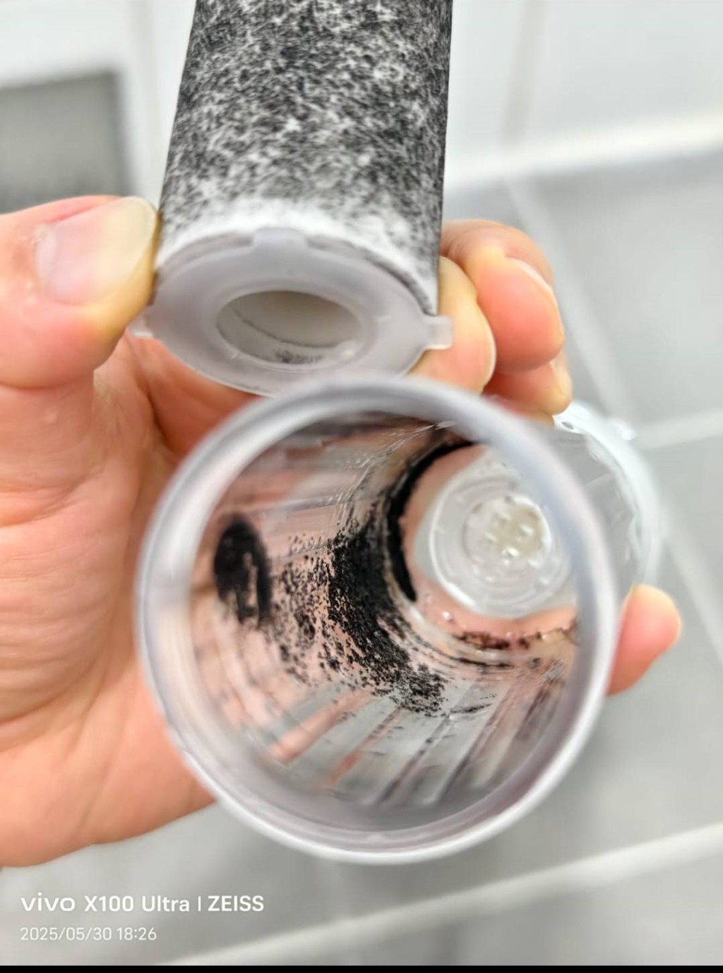 居民的圖片顯示,過濾器零件無論是水蕊或濾嘴,滿是密密麻麻的黑點,有些更類似炭粉,部分圖片寫上:“裝了個全新的,只開了五分鐘”,圖中的濾蕊已烏黑黑,倘沒有過濾器阻隔食水,直接使用的話,衛(wèi)生堪憂,有居民直言:“飲緊純正東江水同沖緊純正東江涼”。