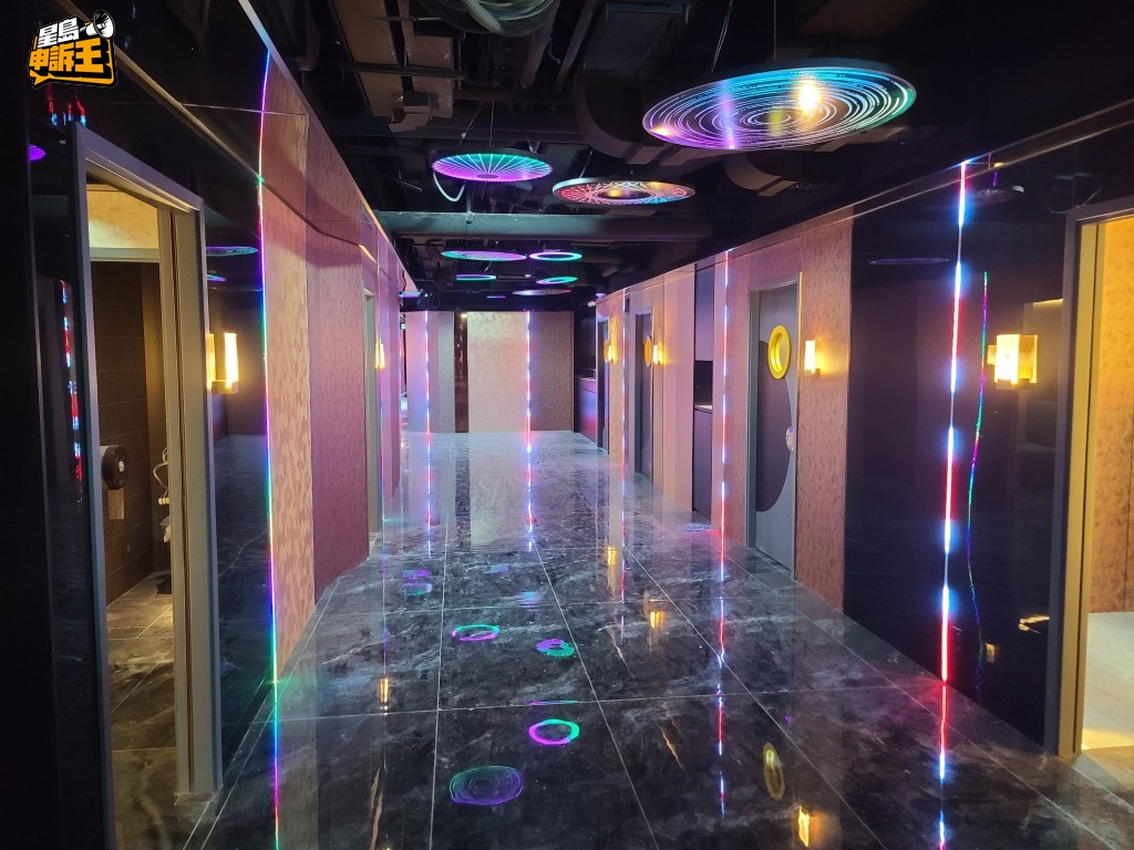 新“大富豪”面積超過5萬呎,分地面和地庫兩層,現(xiàn)場所見地庫層的裝修進已接近完成,地板已鋪好,連接舞臺范圍,整個地庫面積很大,空間感十足。K房裝修基本完成,配合鮮艷燈光的型格風,而且房間裝修精致,與傳統(tǒng)K房黑漆漆的感覺很不同。部分房間梳化已經到貨,酒杯等器皿亦已放好。