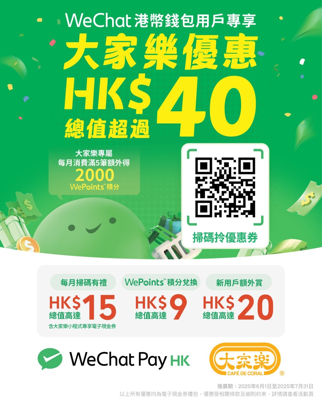 大家樂 x WeChat Pay HK 一連兩個月四重賞! $40優(yōu)惠券+WePoints積分