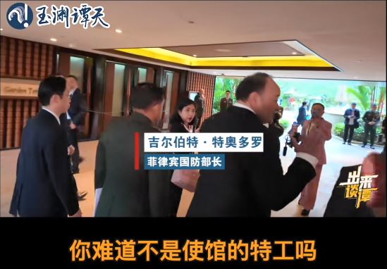 ▲菲律賓防長特奧多羅被問到南海問題時,反質(zhì)疑央視記者是特工。玉淵潭天