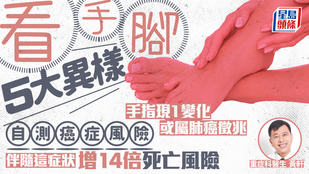 胸腔暨重癥??漆t(yī)生黃軒在Facebook專頁發(fā)文,引述不同研究,講解手腳出現(xiàn)以下警訊,隨時可能是癌癥先兆,不容忽視: