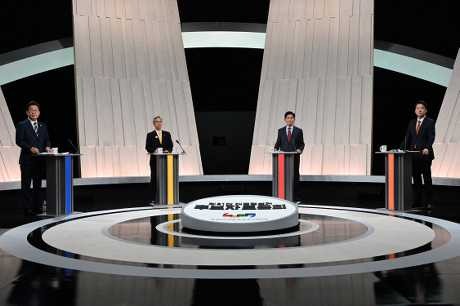 韓總統(tǒng)大選4大候選人李在明、權(quán)英國、金文洙、李俊錫(右),上周二在首爾MBC電視臺(tái)準(zhǔn)備進(jìn)行電視辯論。