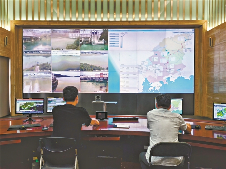 近年來(lái),綠美東江率先有了“智慧”大腦。廣東省東江管理局的大屏上,實(shí)時(shí)顯示著新豐江、楓樹壩、博羅等全流域各節(jié)點(diǎn)的水情。人輕點(diǎn)鼠標(biāo),能生成報(bào)告,指導(dǎo)防洪與抗旱工作?!斑@是數(shù)字孿生東江流域水資源調(diào)配場(chǎng)景?!编崄喎迨欠烙{(diào)度科負(fù)責(zé)人,她介紹,系統(tǒng)搭載了短中長(zhǎng)期降雨徑流預(yù)報(bào)、咸潮預(yù)報(bào)、三大水庫(kù)水量?jī)?yōu)化調(diào)度等模型。東江實(shí)現(xiàn)了全流域全年度無(wú)間斷水量統(tǒng)一調(diào)度,創(chuàng)建了“實(shí)時(shí)監(jiān)控、編制計(jì)劃、定期會(huì)商動(dòng)態(tài)調(diào)度、巡查監(jiān)督、信息共享”的一整套水量調(diào)度模式。