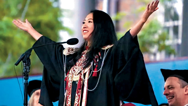 中國(guó)留學(xué)生蔣雨融在哈佛大學(xué)畢業(yè)禮上致辭。