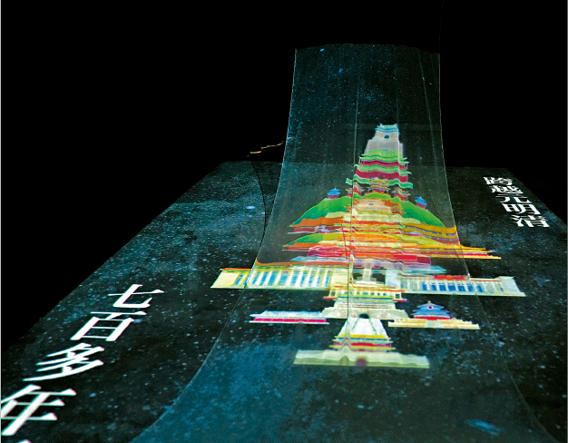 ▲“三維中軸.?dāng)?shù)字城脈”以沉浸式光影數(shù)字互動形式,帶領(lǐng)觀眾穿越千年,探索中軸線的文化內(nèi)涵。