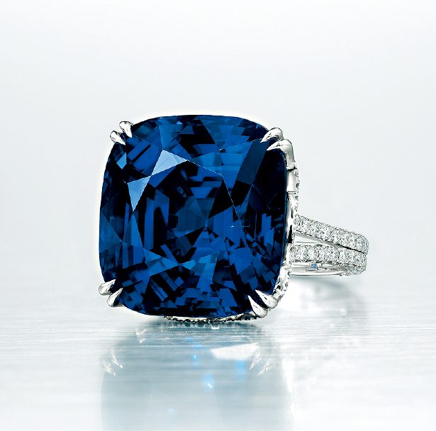 ▲“The Regent Kashmir”鉆石指環(huán),主石為35.09卡枕形喀什米爾天然皇家藍(lán)藍(lán)寶石。
