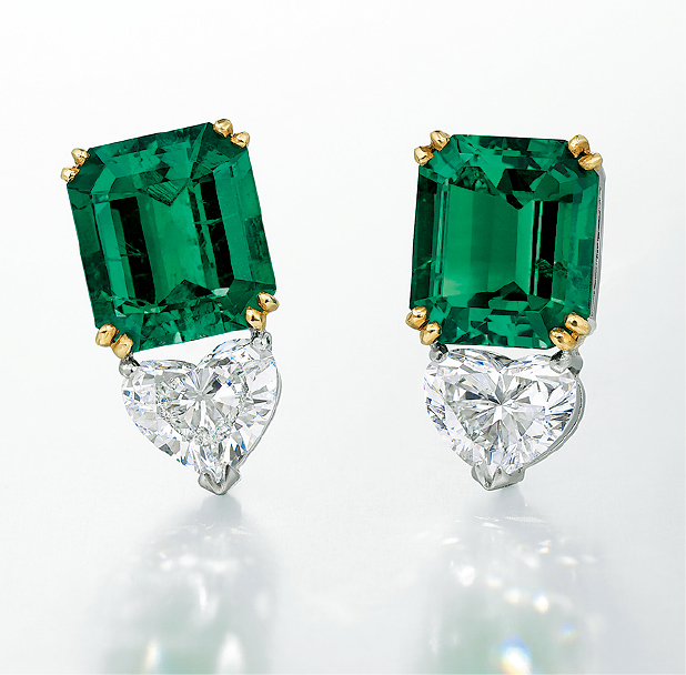 ▲鑲嵌7.03卡及6.92卡哥倫比亞無油祖母綠及鉆石耳環(huán)。
