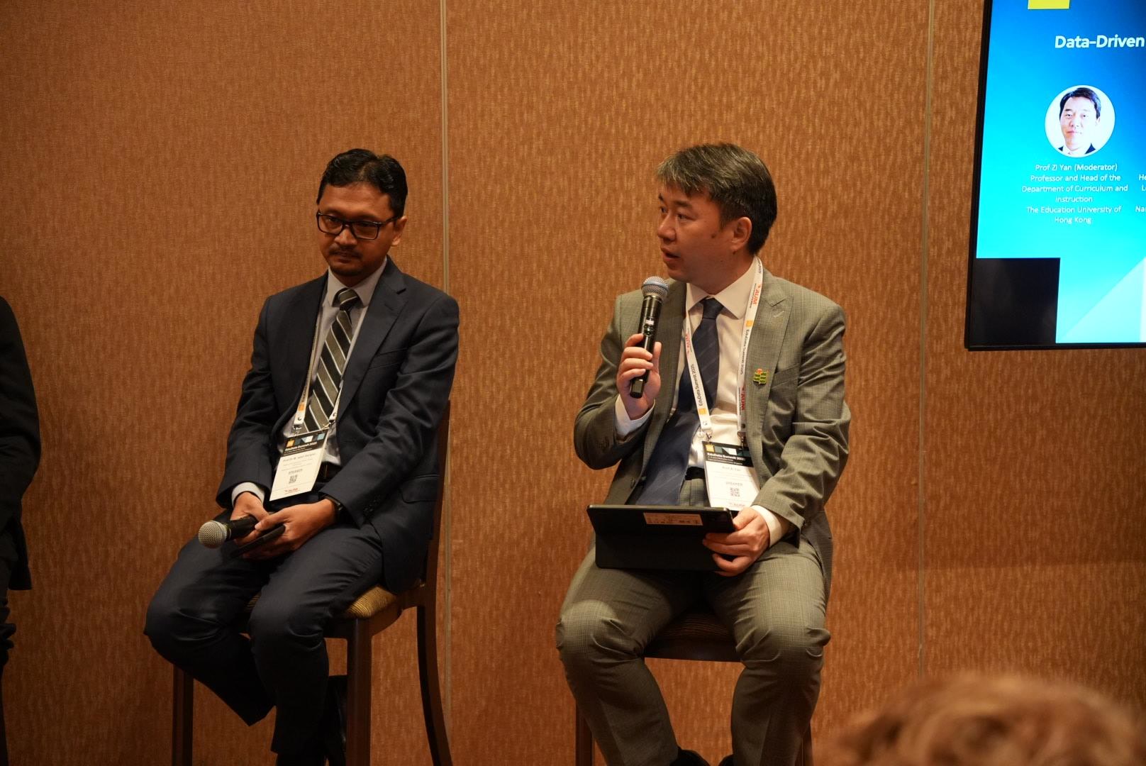 ▲陳智軒教授(左一)主持的論壇,題為“以數(shù)據(jù)為動(dòng)力:為變革的世界制定大學(xué)策略”。