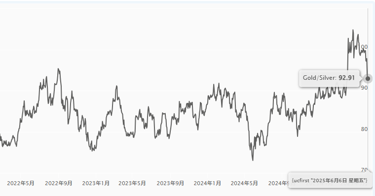 ▲金銀比自早前高位,急回至93以下,拉近黃金與白銀的估值。(GoldSilver圖表)