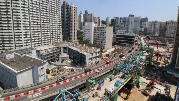 油麻地甘肅街一帶現(xiàn)正進行加士居道天橋重置工程。