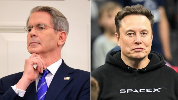 ▲美國財(cái)長貝森特與馬斯克,拼圖 圖源:美媒