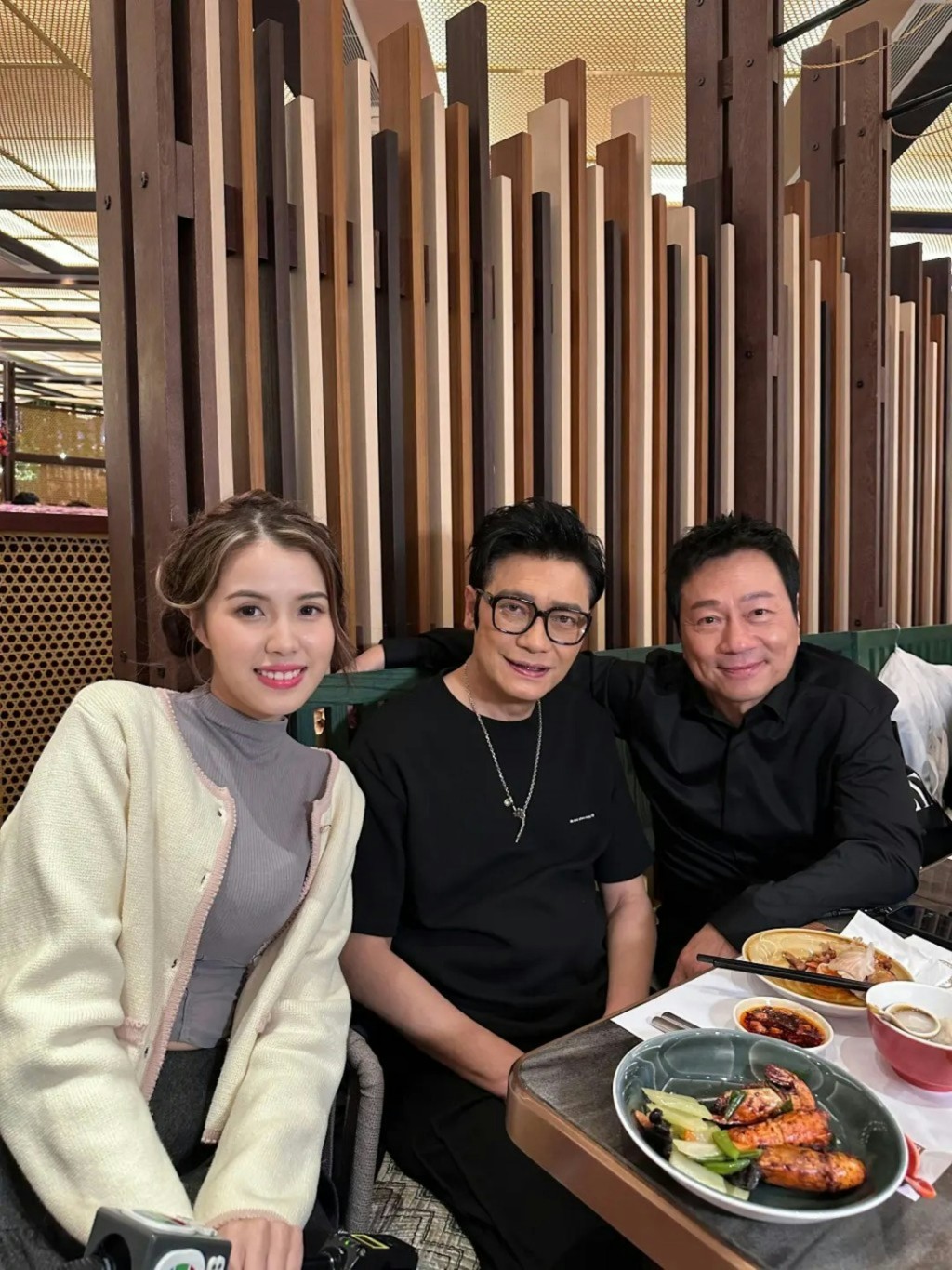 ▲新晉《東張》女神鄧凱文與羅嘉良及黎耀祥合照,驚見羅嘉良斷崖式衰老,眼皮下垂眼袋甚大 。