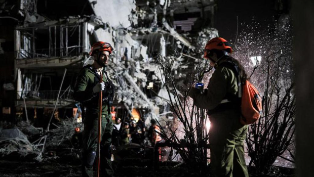 ▲伊朗13日晚報復(fù)以色列,發(fā)動導(dǎo)彈攻擊,救援與安全人員在以色列拉馬甘市(Ramat Gan)執(zhí)行任務(wù)。(路透)