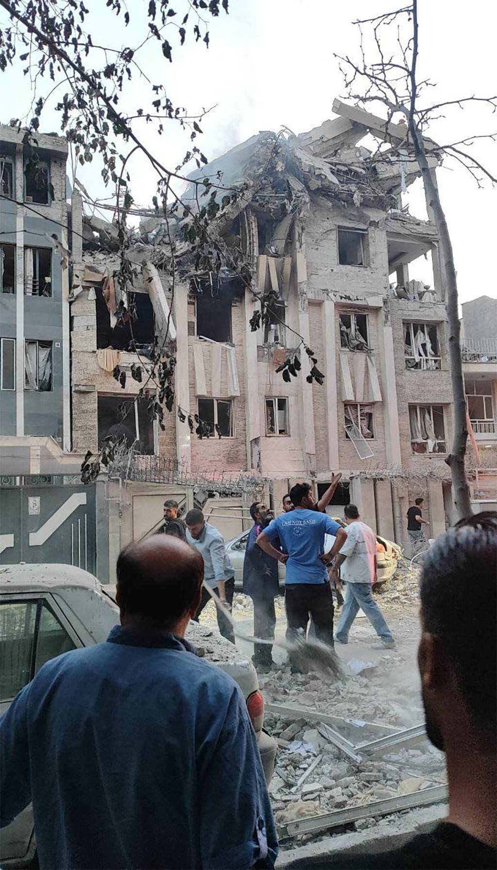 ▲德黑蘭一棟住宅大廈因以色列空襲倒塌一。 X