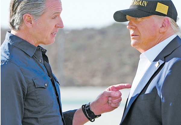 ▲紐森與特朗普今年1月在洛杉磯機(jī)場交談。美聯(lián)社資料圖
